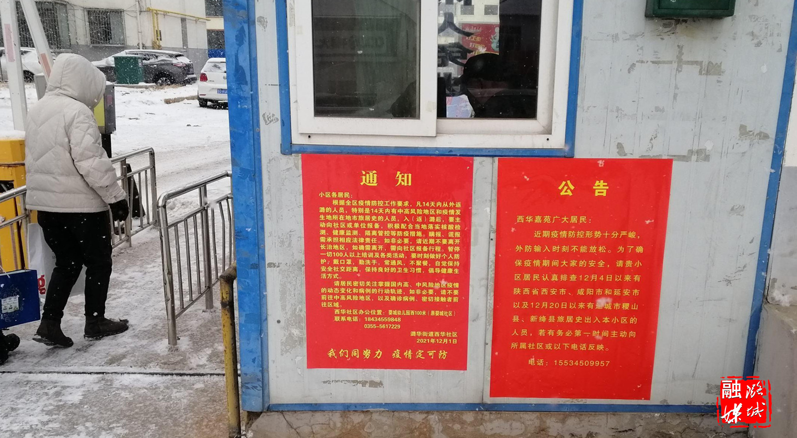 ▲区市场监管局工作人员在包联小区张贴疫情防控通告。