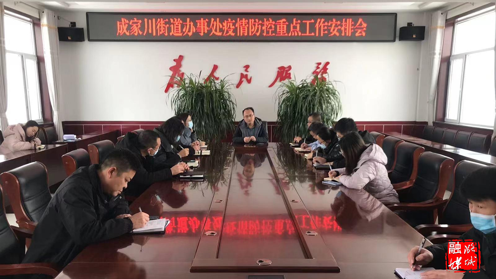 ▲成家川街道召开疫情防控重点工作安排会。