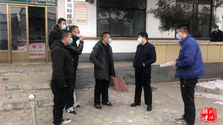 ▲辛安泉镇相关负责人在石梁村检查疫情防控工作。