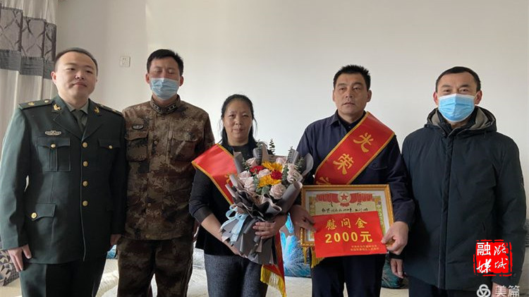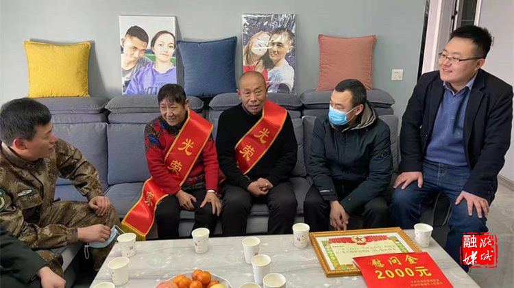 伴随着阵阵喜庆的锣鼓声,区人武部、退役军人事务局等一行人,分别来到立功军人韩赟和申铖承家中,把喜报、慰问金和慰问品送到了家属手上,对其孩子在部队的优异表现致以崇高敬意和祝贺。
