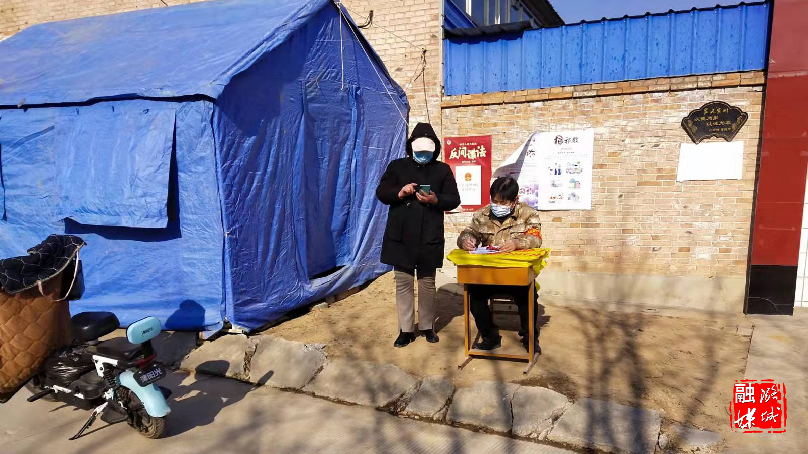 ▲成家川街道各村积极在卡口值班值守,入户宣传疫情防控知识,并协助村民进行核酸检测个人信息预登记。