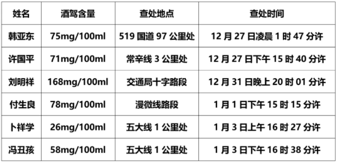 潞城交警大队对以下酒驾、醉驾的违法人员进行曝光,请广大驾驶员牢记“酒后不开车,开车不喝酒”,为家人负责、为自己负责、为社会负责,远离酒驾,珍爱生命。