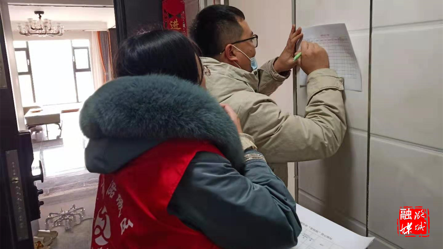 ▲区融媒体中心工作人员深入包联颐龙湾小区摸排外地来潞返潞人员,登记疫情防控相关信息。