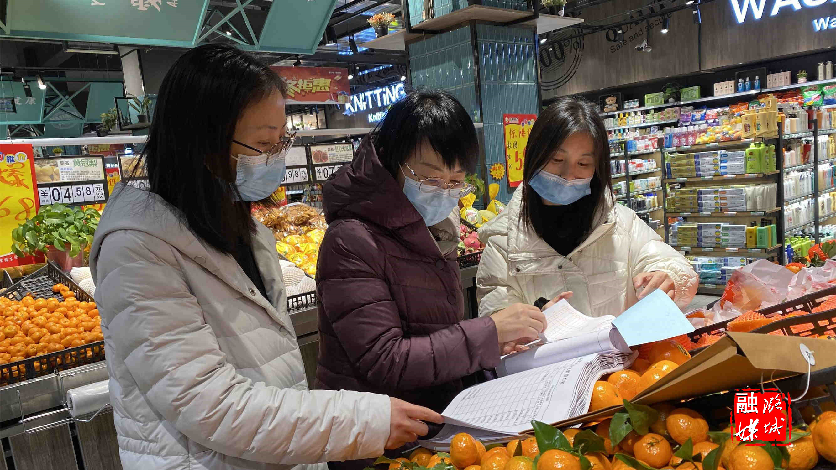 ★1月12日,区市场监管局工作人员在万家乐购超市、客都超市天脊店对水果、冷冻食品等进货单据及进货渠道进行排查,并督促超市完善产地信息。