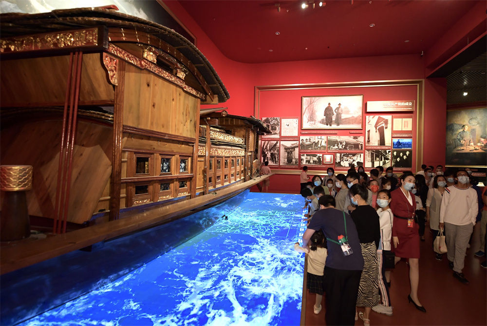党员在上海中共一大纪念馆重温入党誓词(2021年6月3日摄)。新华社记者 刘颖 摄