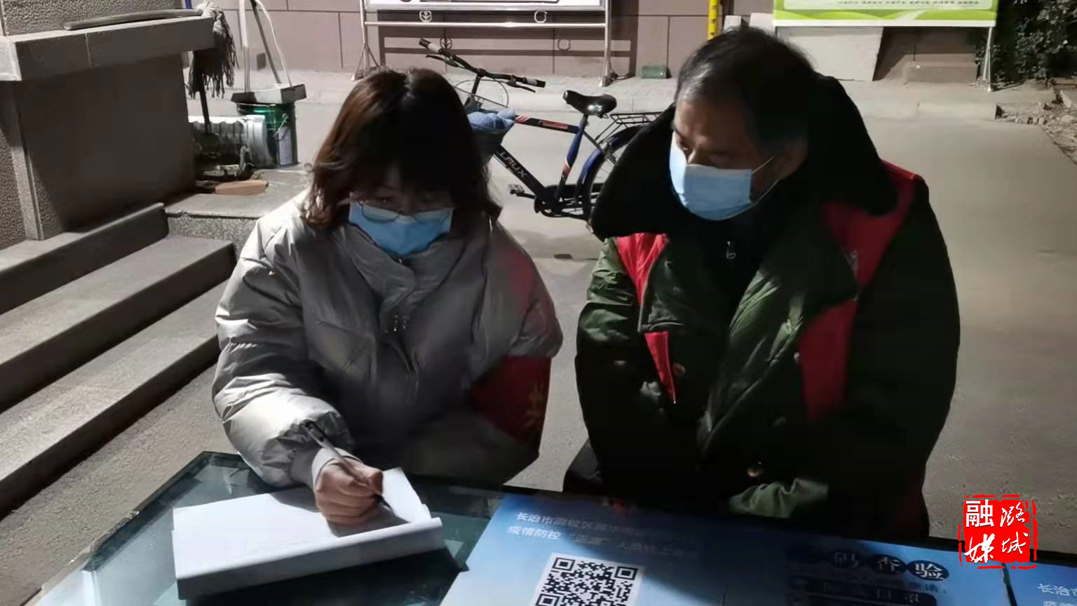 ▲区融媒体中心工作人员深入包联小区——颐龙湾小区开展疫情防控工作。