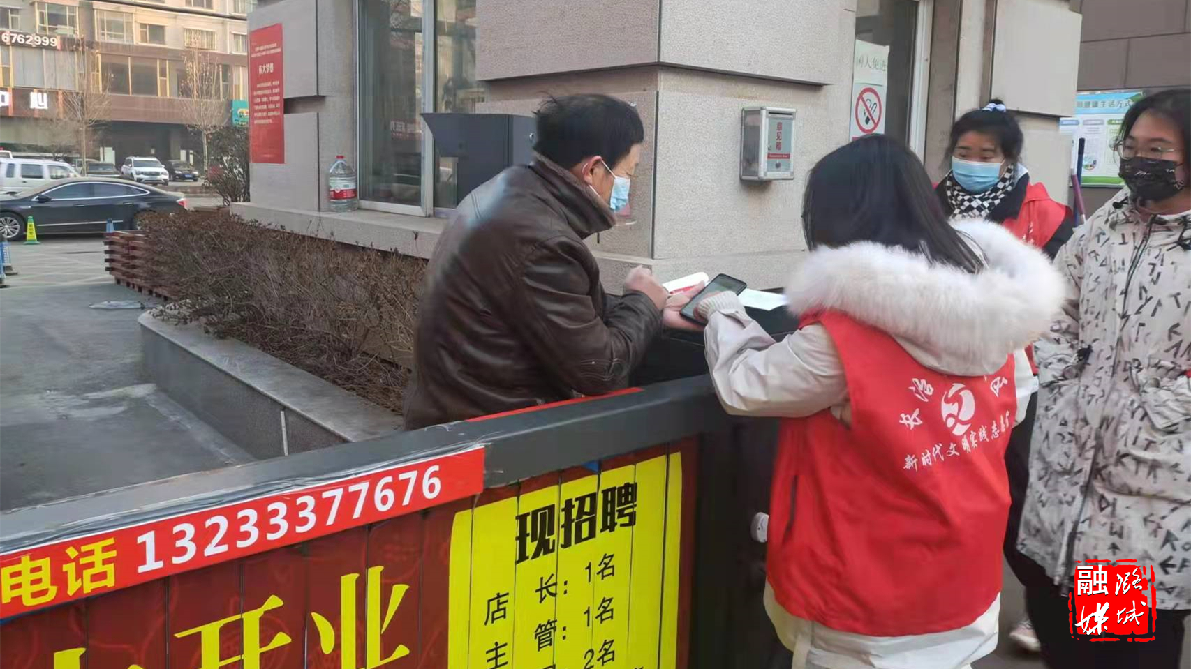 ▲区融媒体中心工作人员深入包联颐龙湾小区开展卡口执勤工作,对进出人员进行“两码”和体温查验,确保“不漏一人”,全力以赴开展疫情防控工作。