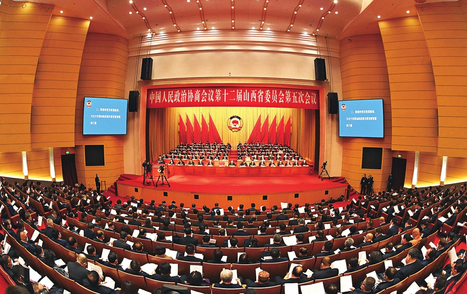 1月19日,中国人民政治协商会议第十二届山西省委员会第五次会议在太原隆重开幕。图为大会会场。山西日报记者孙荣祥摄
