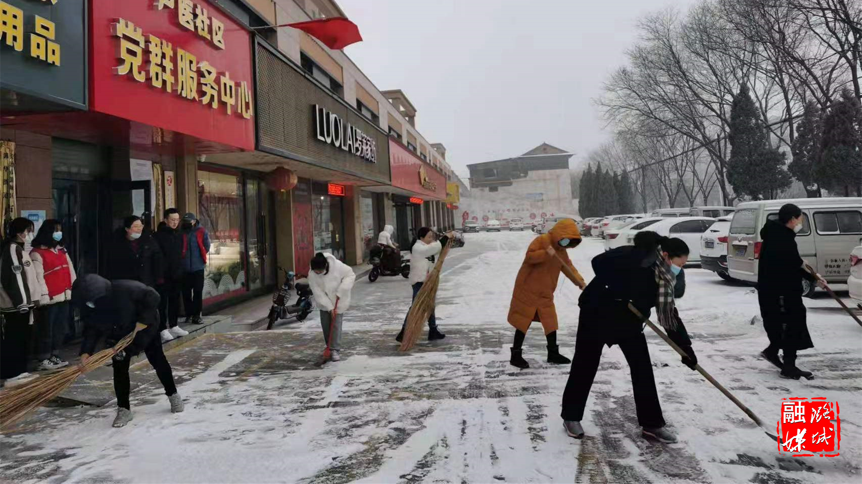 ★1月20日,潞华街道各村、社区组织工作人员开展扫雪活动,保障居民出行安全。