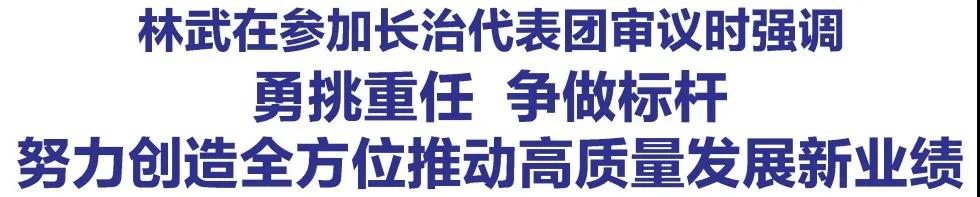 1月20日下午,省委书记、省人大常委会主任林武来到他所在的长治代表团,与代表们一起审议政府工作报告。他强调,要深入学习贯彻习近平总书记视察山西重要讲话重要指示精神,按照省第十二次党代会部署,围绕“建设全国资源型城市转型升级示范区、打造现代化太行山水名城”目标,勇挑重任、争做标杆、创优特色,以优异成绩迎接党的二十大胜利召开。全国政协文化文史和学习委员会副主任王儒林,省领导李凤岐、卫小春、冯军参加审议。