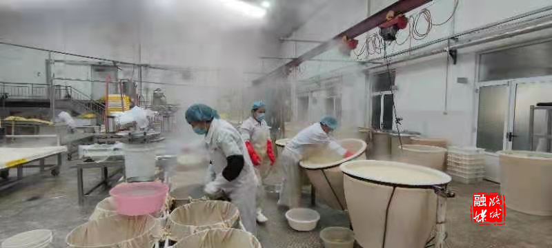 一大早,老东家豆腐坊的工人师傅们就已经忙碌起来。记者推门而进,浓郁的豆香扑面而来,引人垂涎。