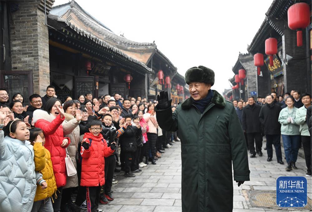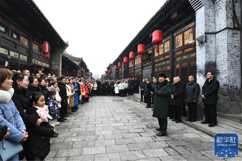 1月26日至27日,中共中央总书记、国家主席、中央军委主席习近平来到山西,看望慰问基层干部群众。这是27日上午,习近平在平遥古城同现场群众亲切交流。新华社记者 谢环驰 摄