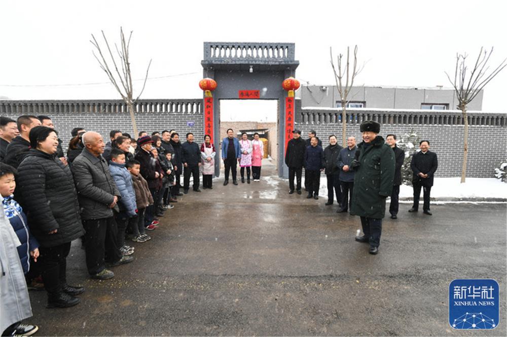 1月26日至27日,中共中央总书记、国家主席、中央军委主席习近平来到山西,看望慰问基层干部群众。这是26日下午,习近平在临汾市霍州市师庄乡冯南垣村考察时,同村民们亲切交流。新华社记者 谢环驰 摄