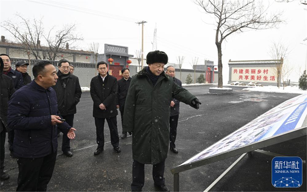 1月26日至27日,中共中央总书记、国家主席、中央军委主席习近平来到山西,看望慰问基层干部群众。这是26日下午,习近平冒雪在临汾市霍州市师庄乡冯南垣村考察。新华社记者 李学仁 摄