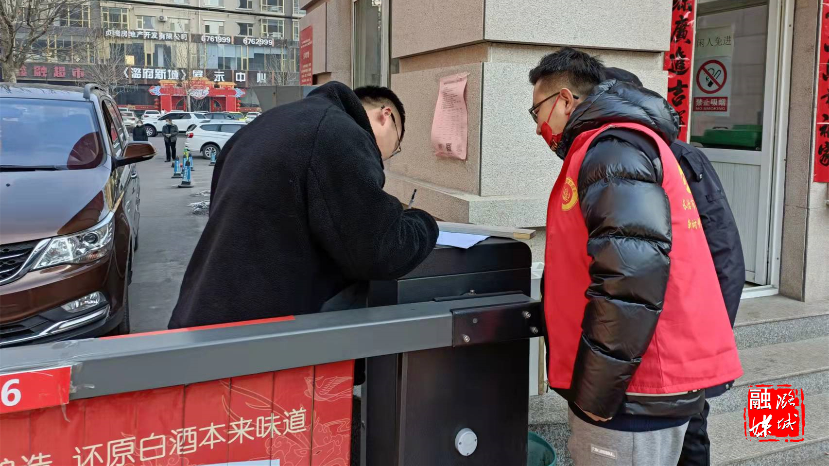 ▲区融媒体中心工作人员在包联小区——颐龙湾小区开展疫情防控值班值守,对进出入人员进行严格排查。