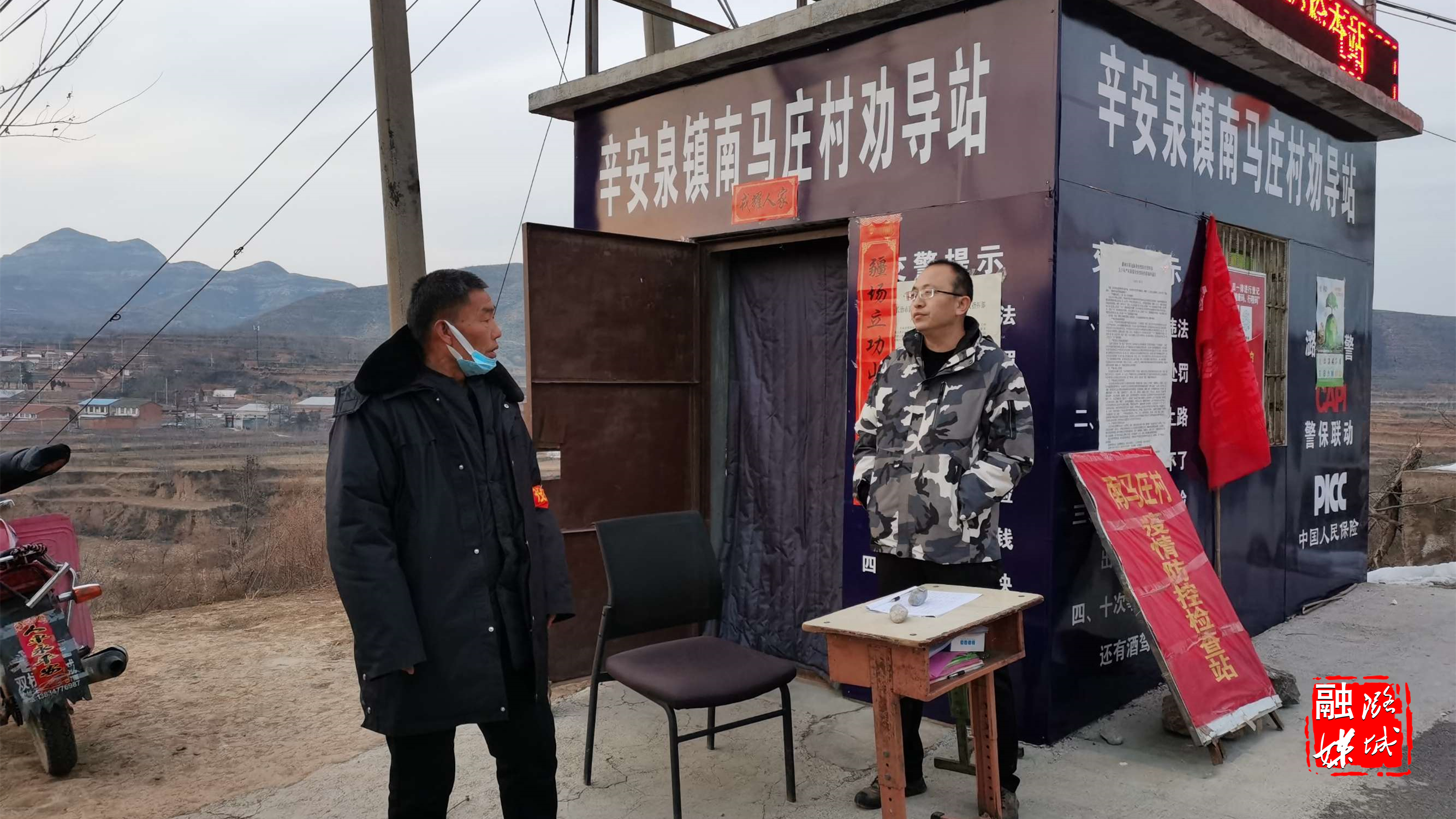 ▲辛安泉镇相关负责人在各村督查疫情防控工作,并对村“两委”主干在岗情况进行检查。