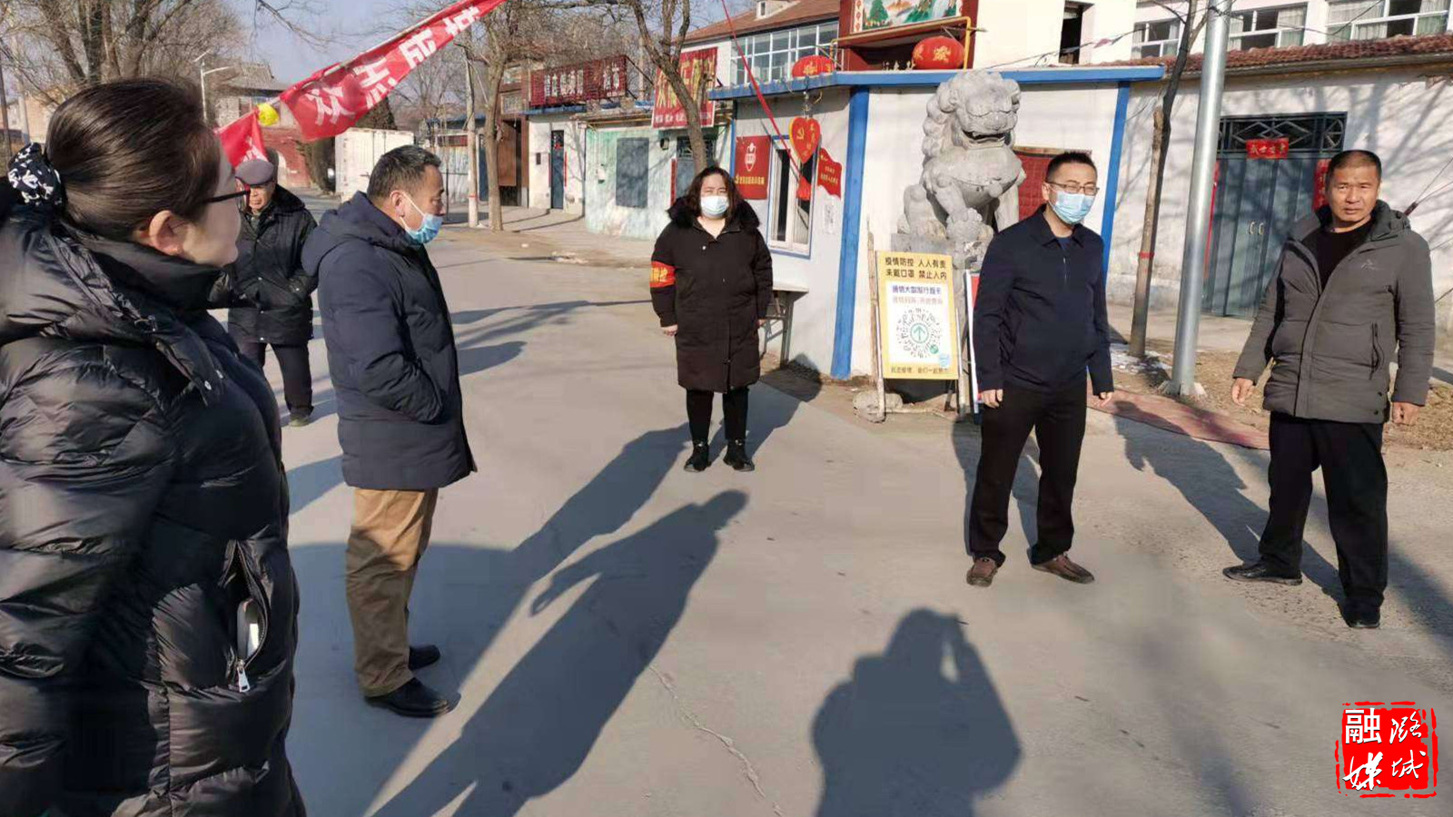 ▲辛安泉镇相关负责人在各村督查春节期间值班值守、疫情防控、安全生产、森林防火等工作。