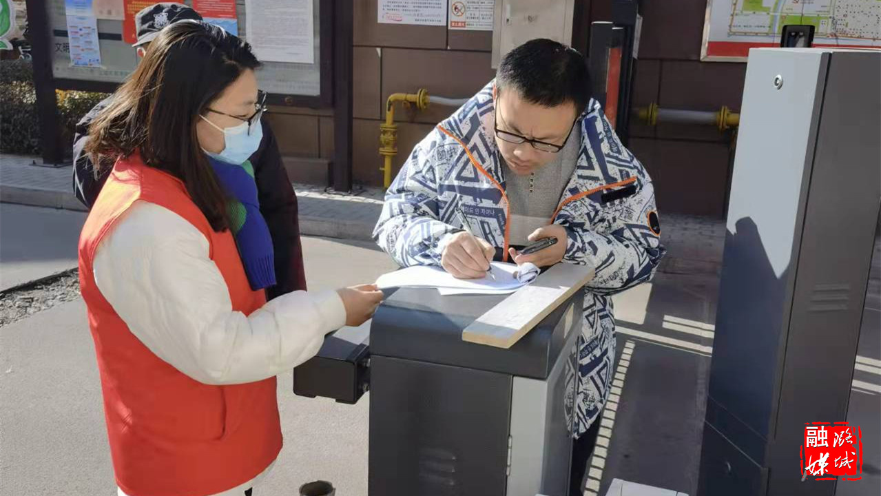 ▲区融媒体中心工作人员在包联小区——颐龙湾小区开展疫情防控值班值守,对进出入人员进行严格排查。