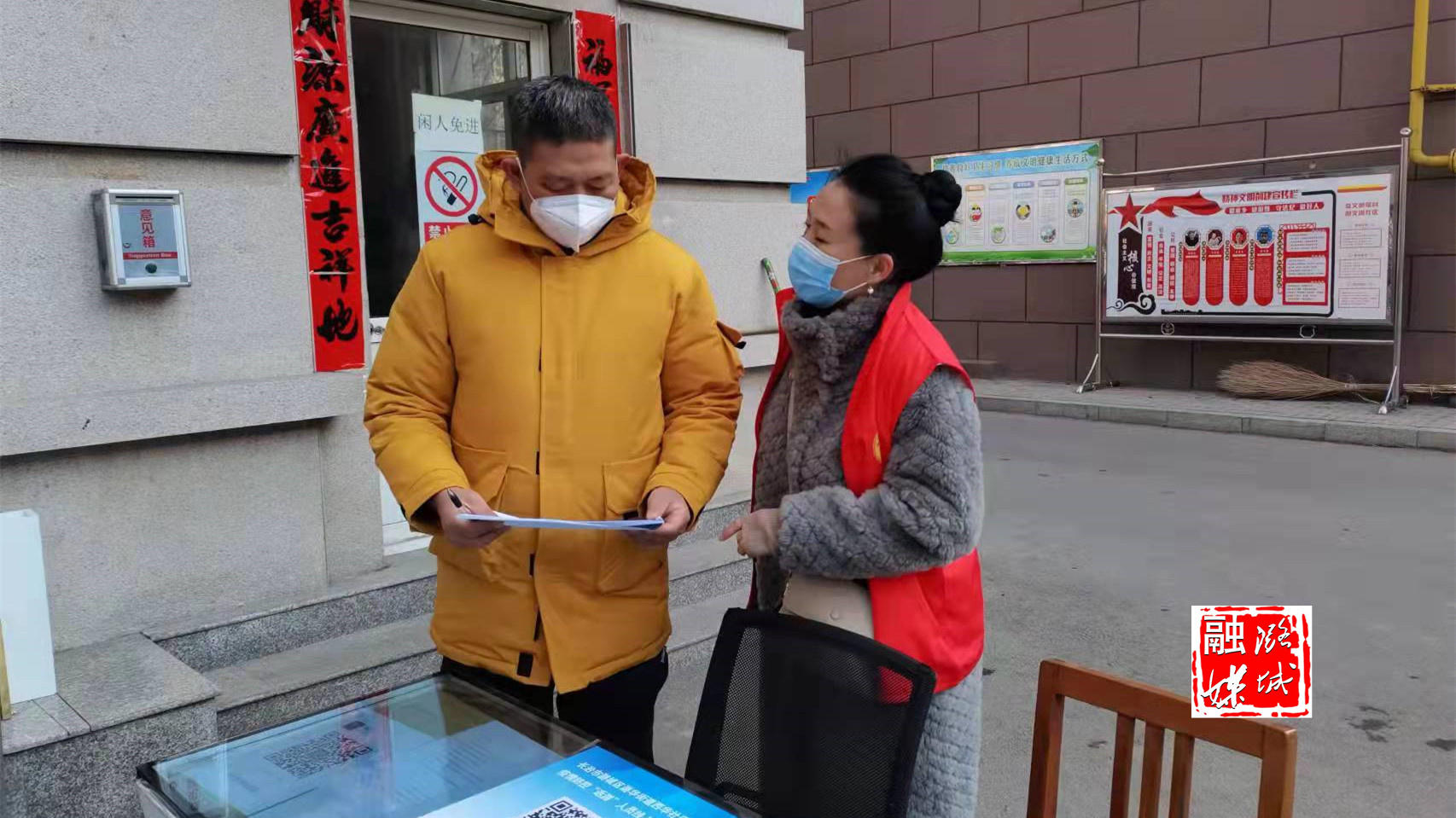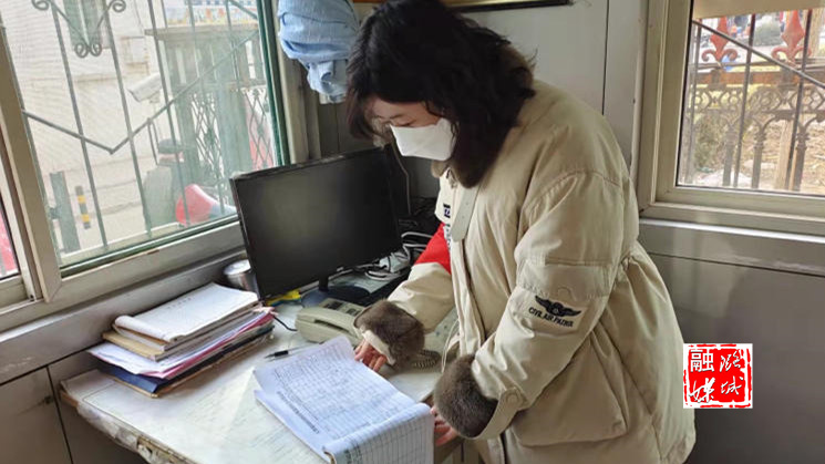 ▲区融媒体中心工作人员在包联小区——颐龙湾小区开展疫情防控值班值守,对进出入人员进行严格排查。