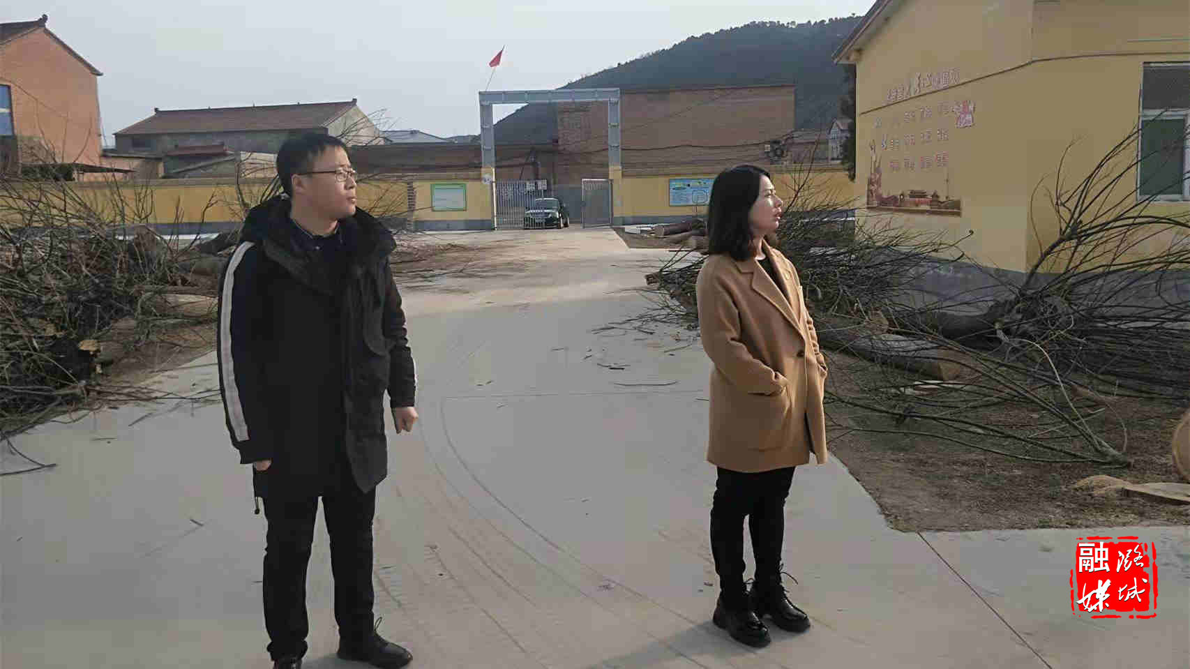 ★2月7日,辛安泉镇负责人在西流南村、西流北村、南流村查看灾后安置小区建设情况。