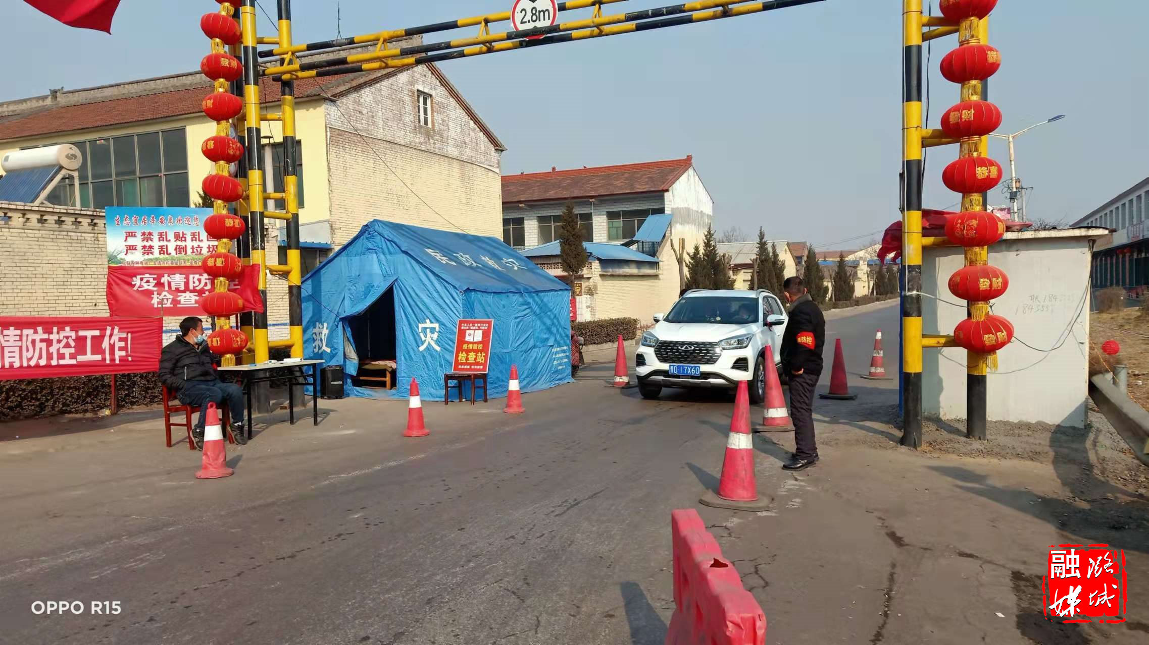 ▲辛安泉镇各村坚守疫情防控岗位,把好入村第一关。