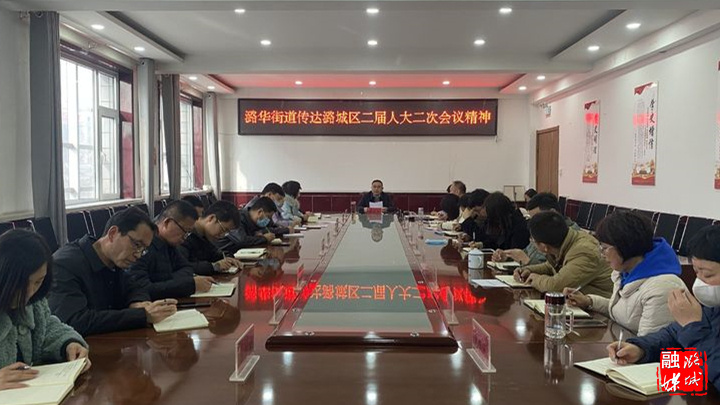▲潞华街道负责人主持召开专题会议,传达学习区“两会”精神。