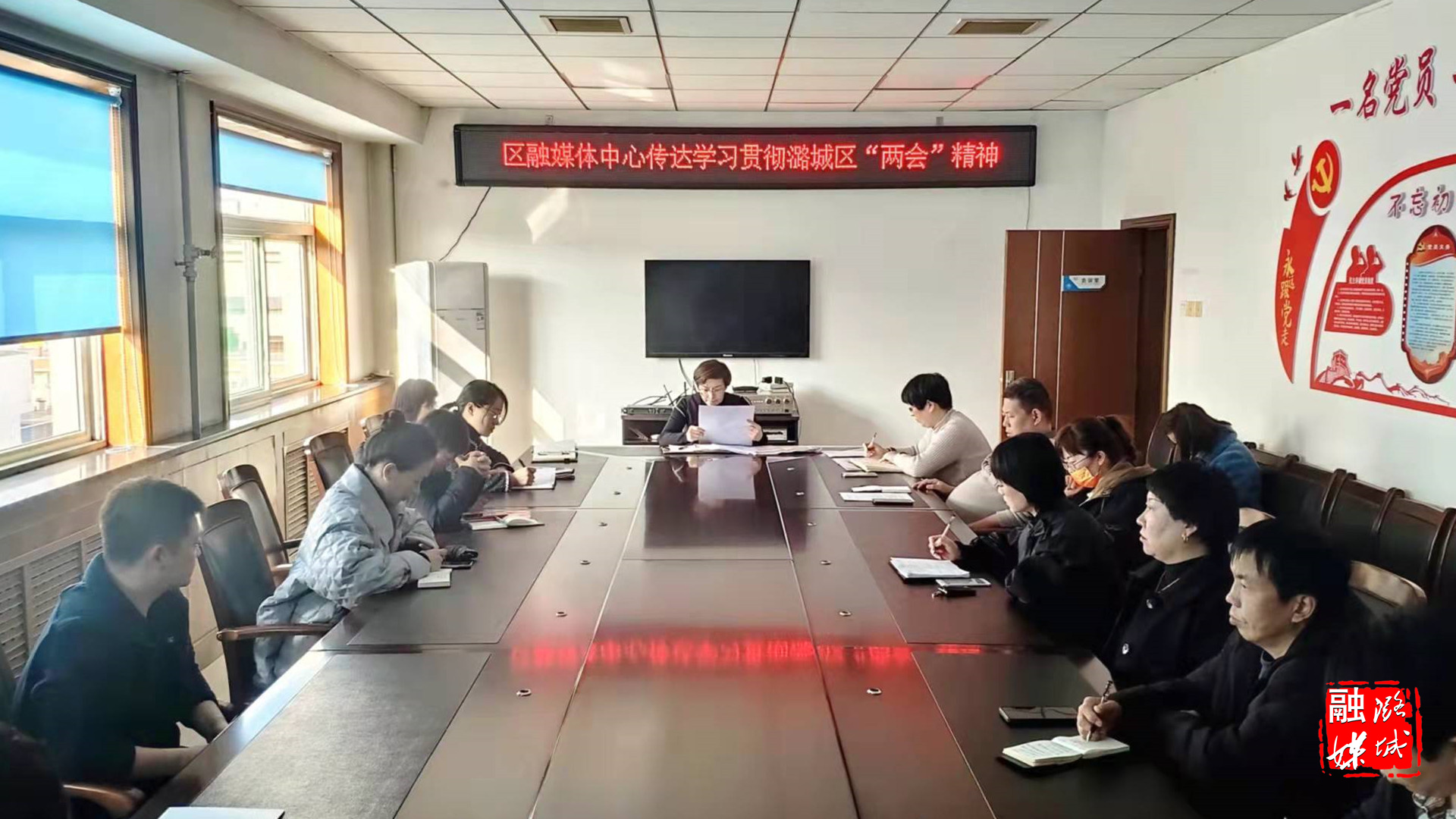 ▲区融媒体中心召开工作例会,传达学习全区“两会”精神。
