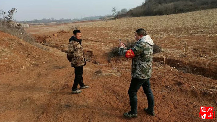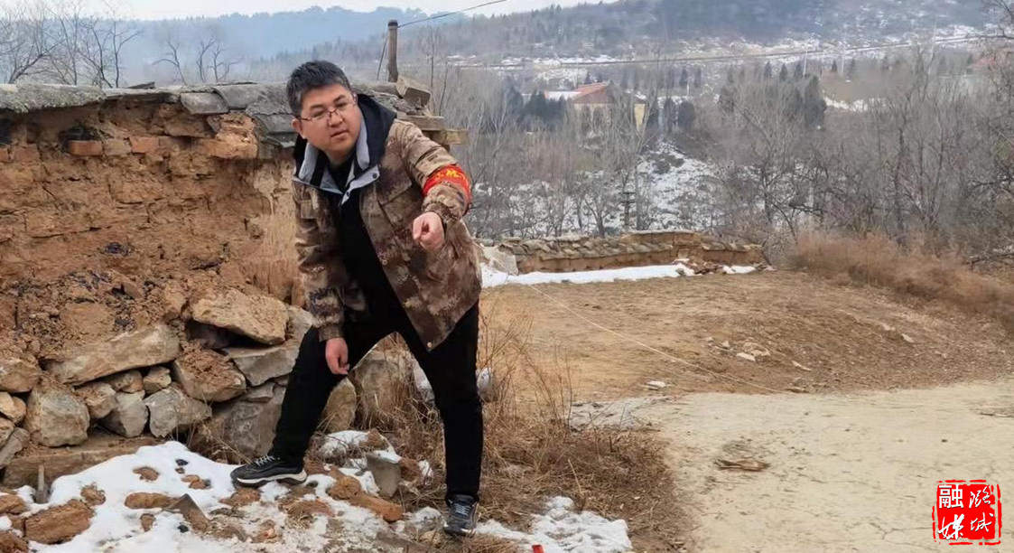 ★2月16日,成家川街道相关负责人在米家村查看因窑洞坍塌造成的地质安全隐患。
