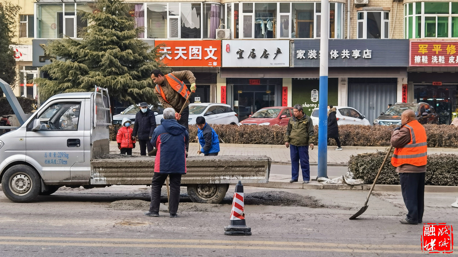 ★2月16日,区住房和城乡建设局组织人员继续对潞阳大道及中华大街破损路面进行修复。