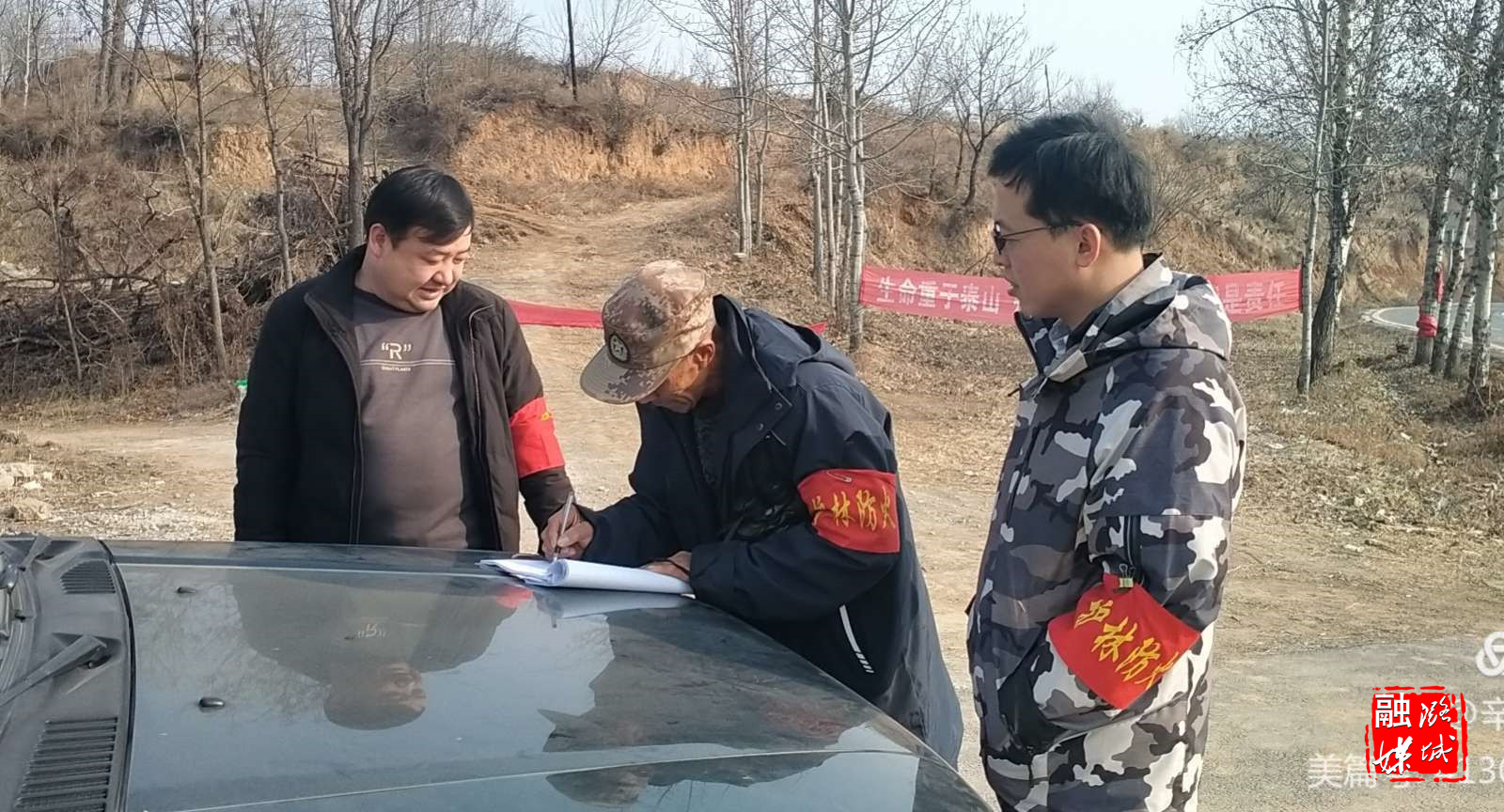 ▲辛安泉镇林业站工作人员开展森林防火日常巡查。