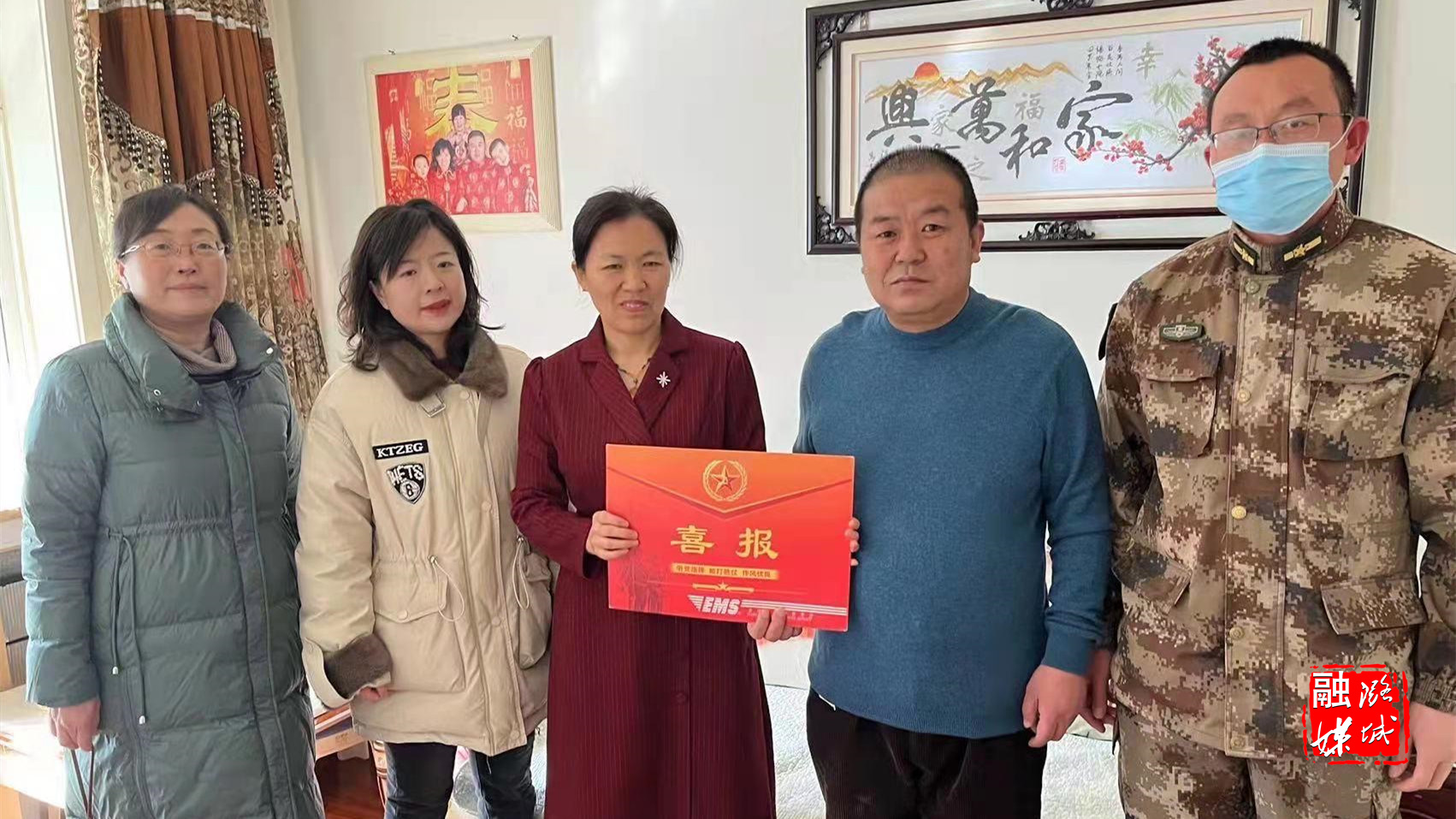 ★2月19日,成家川街道相关负责人到天脊社区给优秀现役军人家属送上喜报。