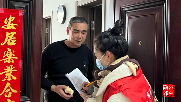 ▲区融媒体中心工作人员在包联小区——颐龙湾小区进行入户排查。
