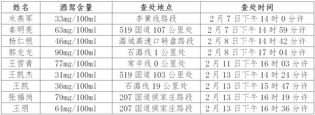 元宵节已过 佳节相聚少不了饭桌上喝酒 酒后驾驶行为也随之增多 这不,又有9名驾驶人以身试法 坏了节日的气氛 让我们一起来看看吧 ↓↓↓ 查酒驾的时间是每天 不分初一或十五 不要心存侥幸哦~ 酒后驾车万万不可 不!要!酒!驾!