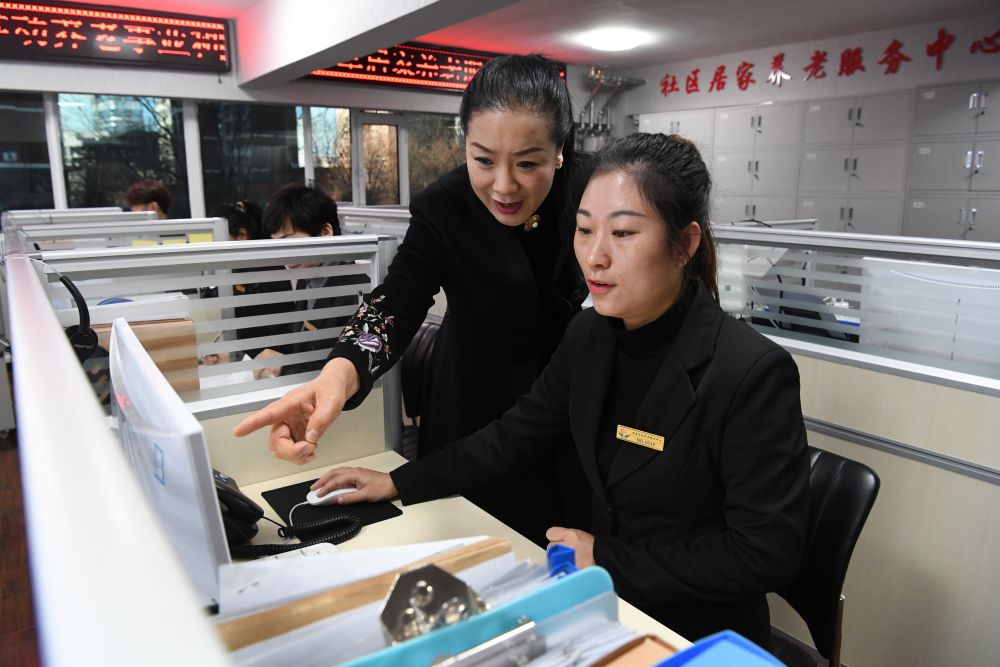 河北省承德市爱孝居家养老服务中心工作人员在滨河社区智慧服务平台工作(2021年12月16日摄)。新华社记者 朱旭东摄