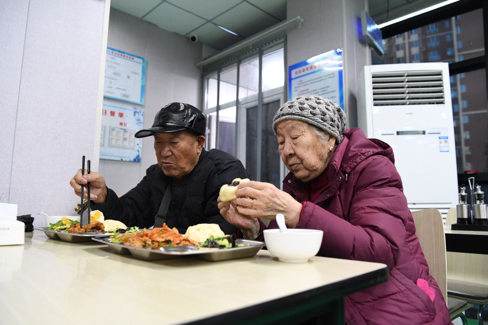 河北省秦皇岛经济技术开发区泰盛家园小区老人在社区食堂就餐(2022年1月5日)。新华社发 (王继军 摄)