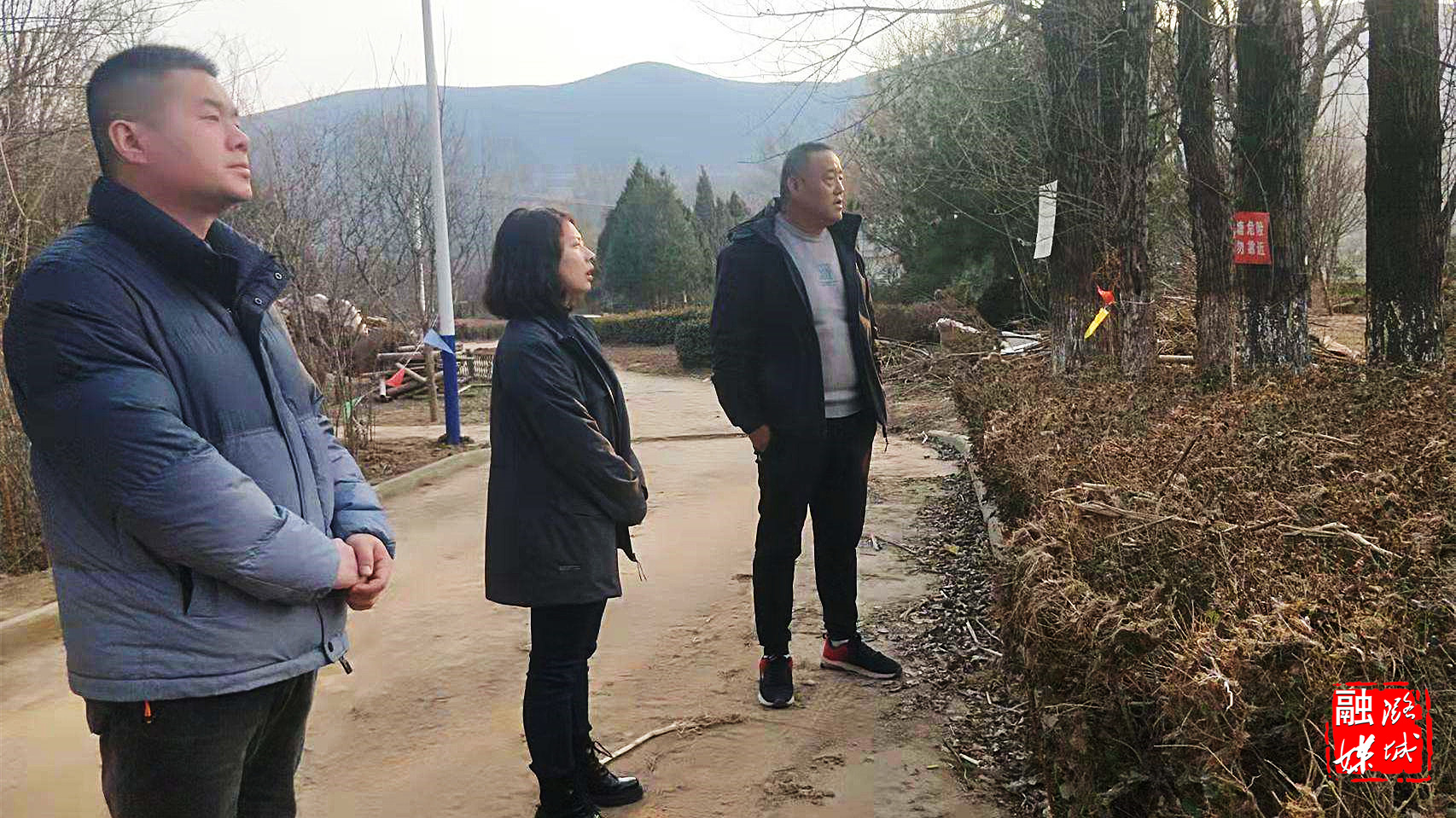 ★2月24日,辛安泉镇负责人在南流村指导灾后重建工作,并就灾后产业恢复进行商讨。