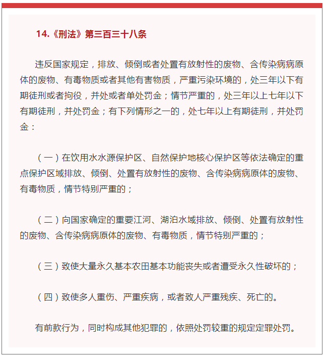 15.违反疫情防控规定,乱扔口罩、防护服等医疗防护用品等,根据《刑法》第三百三十八条,违反传染病防治法等疫情防控规定,随意处置含新型冠状病毒病原体的医疗防护用品、器材、医疗生活废物以及其他有毒有害物质,严重污染环境的,可能涉嫌污染环境罪。故意投放新冠肺炎病原体,严重危害公共安全,致人重伤、死亡或者使公私财产遭受重大损失的,可能涉嫌违反《刑法》第一百一十四条、第一百一十五条,构成以危险方法危害公共安全罪。