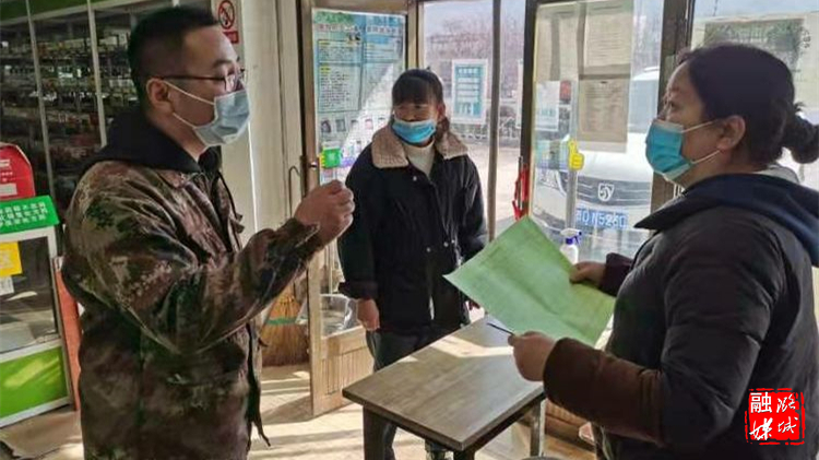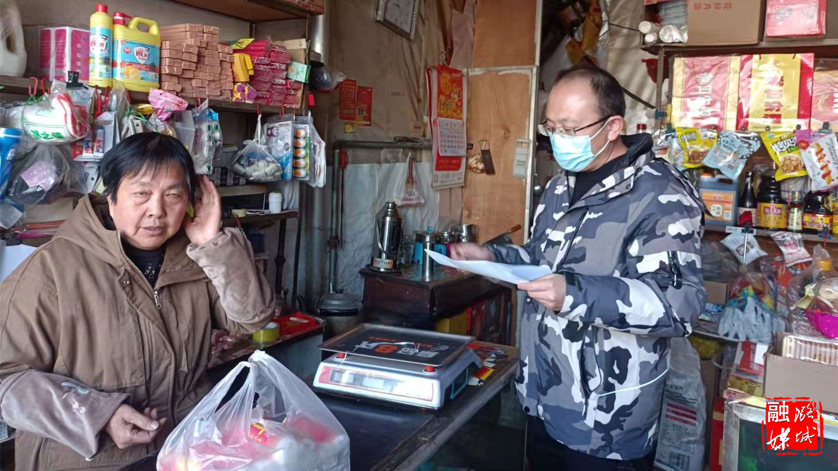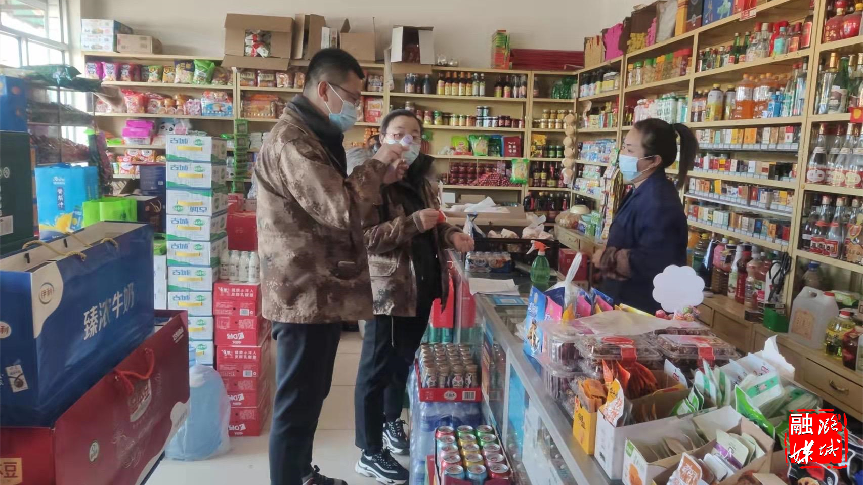 ▲辛安泉镇相关负责人在镇区经营门店督查疫情防控工作。