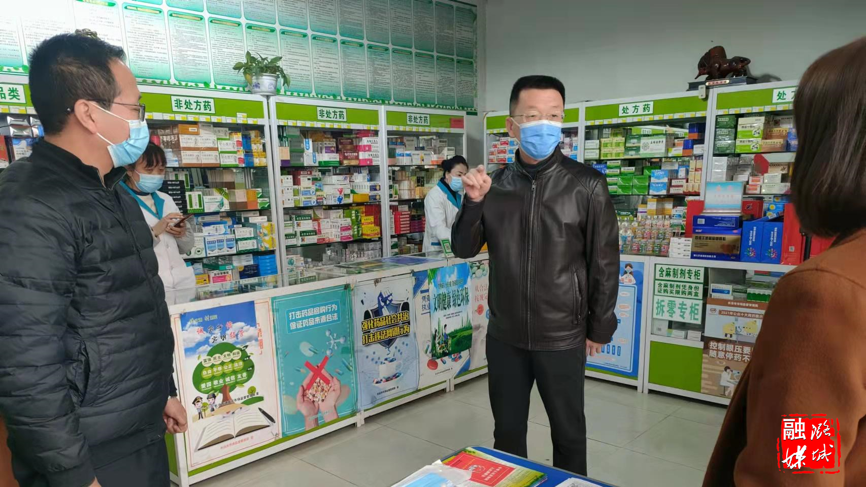 ▲区市场监管局相关负责人对停业整顿的药店疫情防控情况进行回头看。