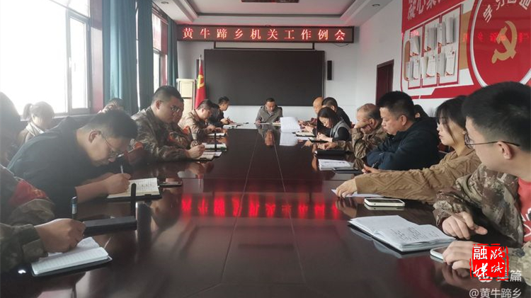 ▲黄牛蹄乡负责人主持召开机关工作例会,就疫情防控、信访稳定、党风廉政、清化收等当前重点工作进行安排部署。