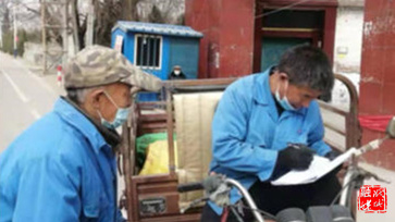 ▲翟店街道相关负责人在快递点检查疫情防控工作。