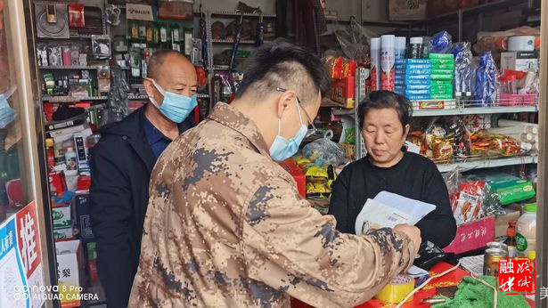 ▲潞华街道卢医社区工作人员到辖区内“九小场所”查看疫情防控排查登记情况。