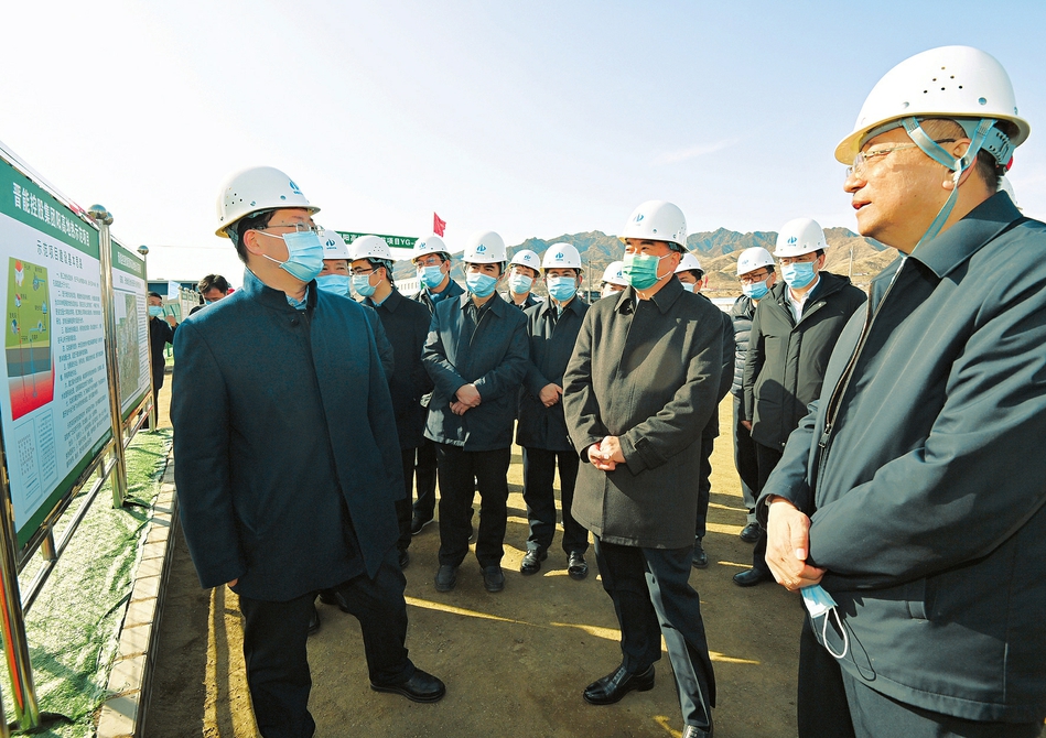 3月21日,省委书记林武来到阳高地热温泉区,察看104℃温泉井和晋能控股集团地热示范项目,了解区域地热资源分布及潜力开发利用情况,听取勘探试采工作汇报。山西日报记者史晓波摄