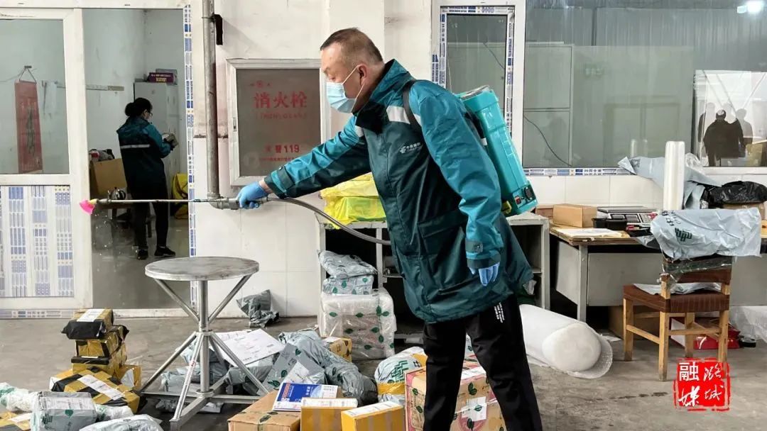 一辆辆快递车、货车来回穿梭,快递员们戴着口罩和手套忙着收件、分拣、派件。日前,记者来到中国邮政集团有限公司长治市潞城区分公司分拣中心看到,现场一派忙碌的景象,其中,一位工作人员正拿着消杀壶,对场地及快递进行消毒。