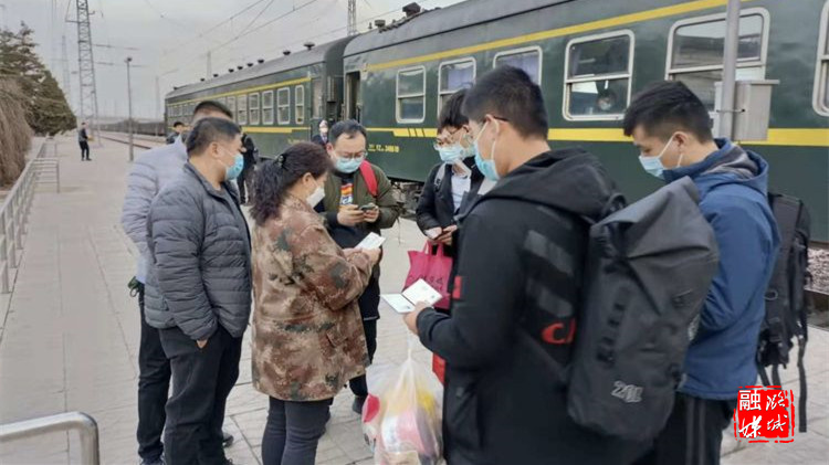▲辛安泉镇相关负责人在常村火车站对进出站车辆、上下车人员进行疫情防控检查。