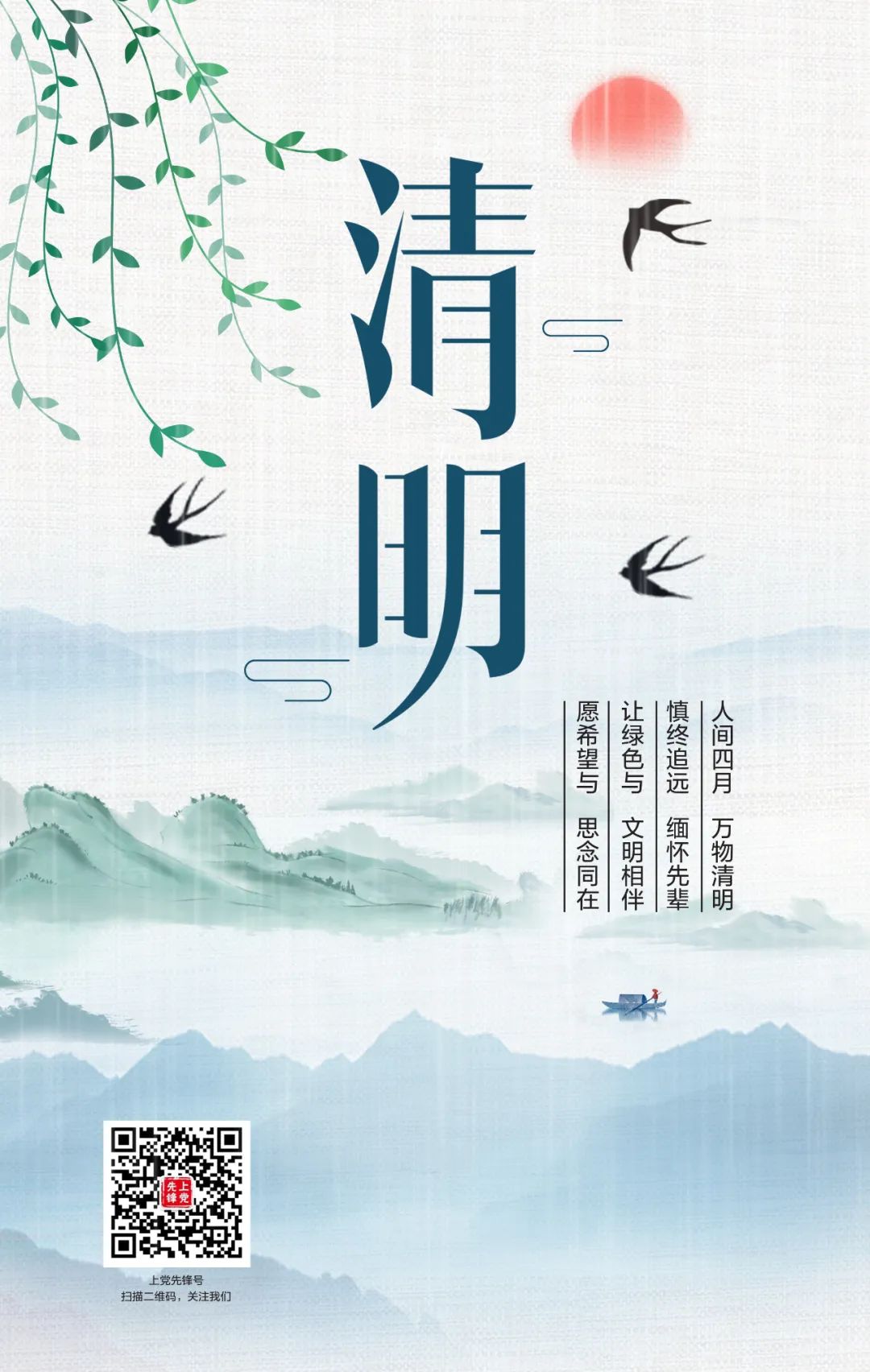 “燕子来时新社,梨花落后清明”。让我们积极行动起来,做告别陋习的先行者、文明祭扫的践行者、传统美德的继承者、疫情防控的守护者,以文明缅怀的实际行动,守护绿水青山。