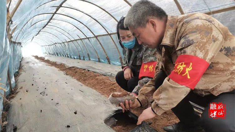 ★4月4日,潞华街道相关负责人在西坡村查看羊肚菌种植情况。
