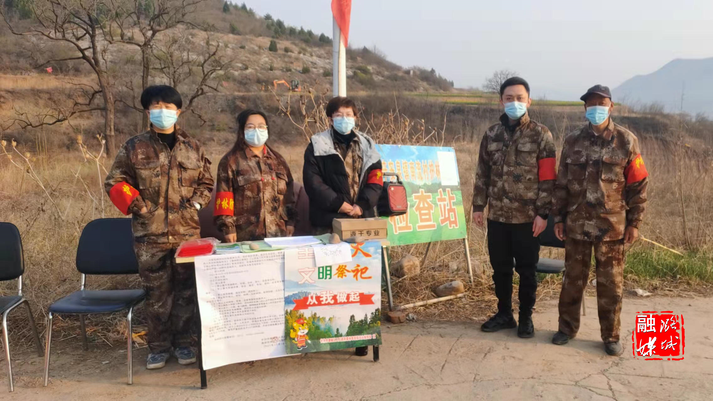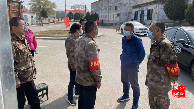 ▲成家川街道负责人到各村督导护林防火和疫情防控各项措施落实情况。
