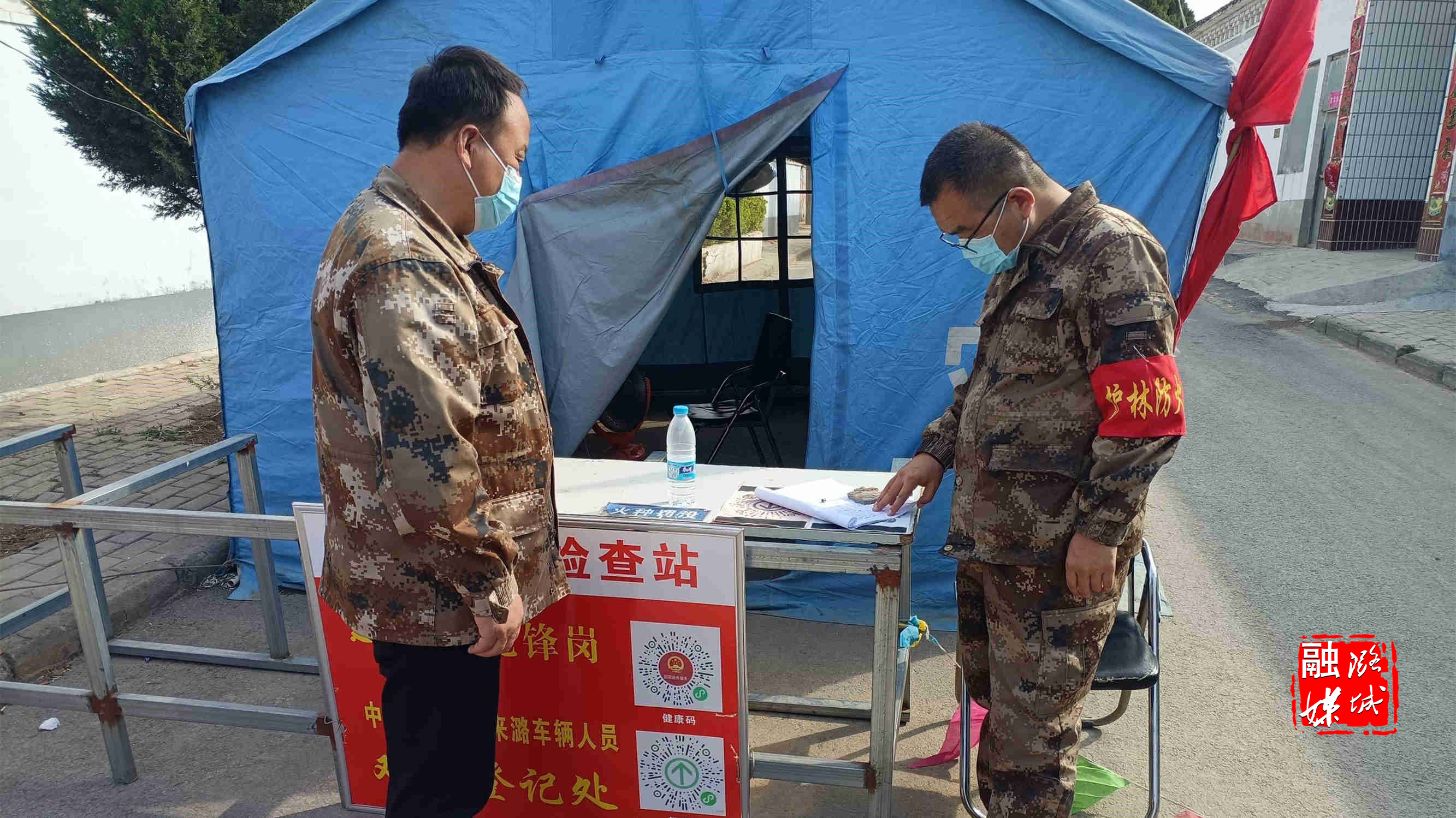 ★4月4日,成家川街道各村(社区)工作人员到卡口对重点车辆人员进行排查登记、查验“两码”,落实疫情防控措施。