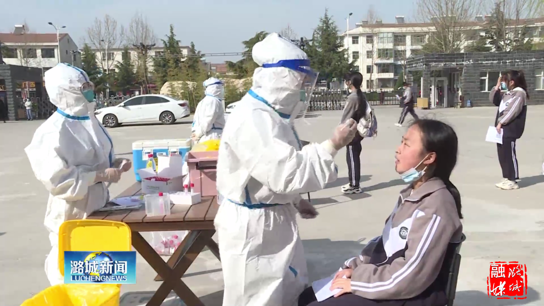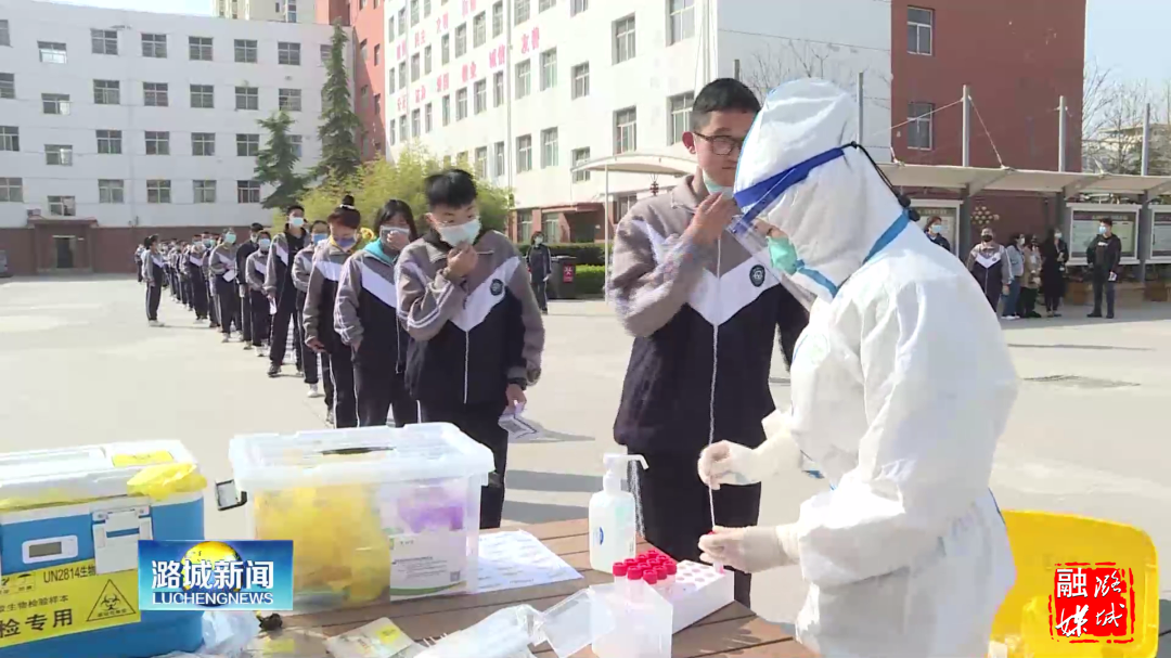 在潞城一中检测现场,医护人员身着防护服,正在为学生们进行咽拭子采样,学生们戴好口罩按照一米距离有序站队,逐个扫码,依次进行核酸检测,即采即走,快速有序。